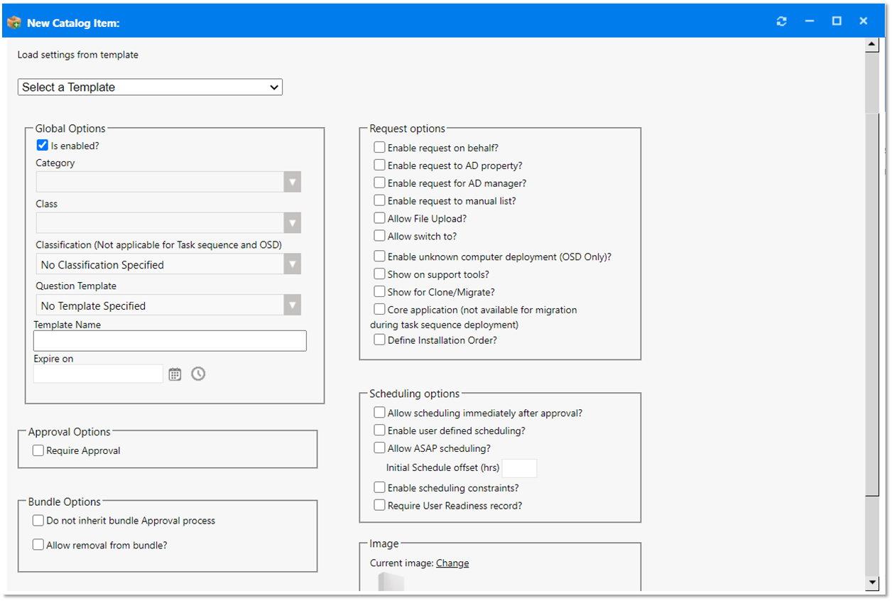 3. On the General > Global tab of the New Catalog Item Properties dialog box, select the Classification drop-down and select a classification for this catalog item.