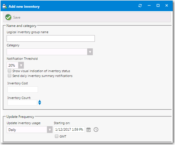 2. In the Logical inventory group name field, enter a name that will represent the inventory record. The name can be general if you will track multiple versions of a program, or very specific if you are tracking a single instance of a program.