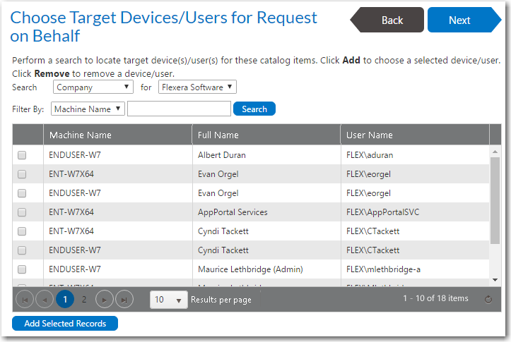 - Search for targets using the Filter By fields: User Name , Full Name or Machine Name .